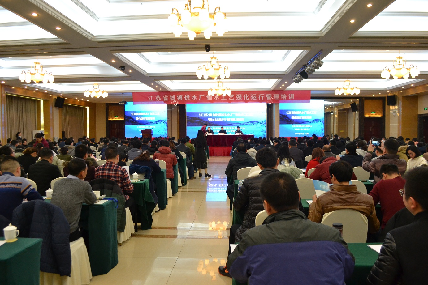 2017年12月27日至29日,為了指導各地提升城鎮(zhèn)供水廠的運行管理水平、保障供水安全,江蘇省城鎮(zhèn)供水安全保障中心在江蘇無錫舉辦江蘇省城鎮(zhèn)供水廠制水工藝強化運行管理培訓。與會學習的有南京、無錫、徐州、常州、蘇州、南通、連云港、淮安、鹽城、揚州、鎮(zhèn)江、泰州、興化、泰興、宿遷、安徽等地水司領導近400人。