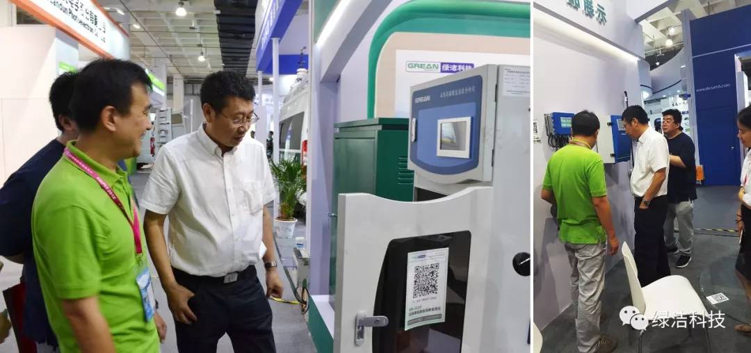 中國(guó)環(huán)境監(jiān)測(cè)總站副站長(zhǎng)劉廷良一行參觀綠潔科技展臺(tái),并詳細(xì)了解公司各項(xiàng)產(chǎn)品。