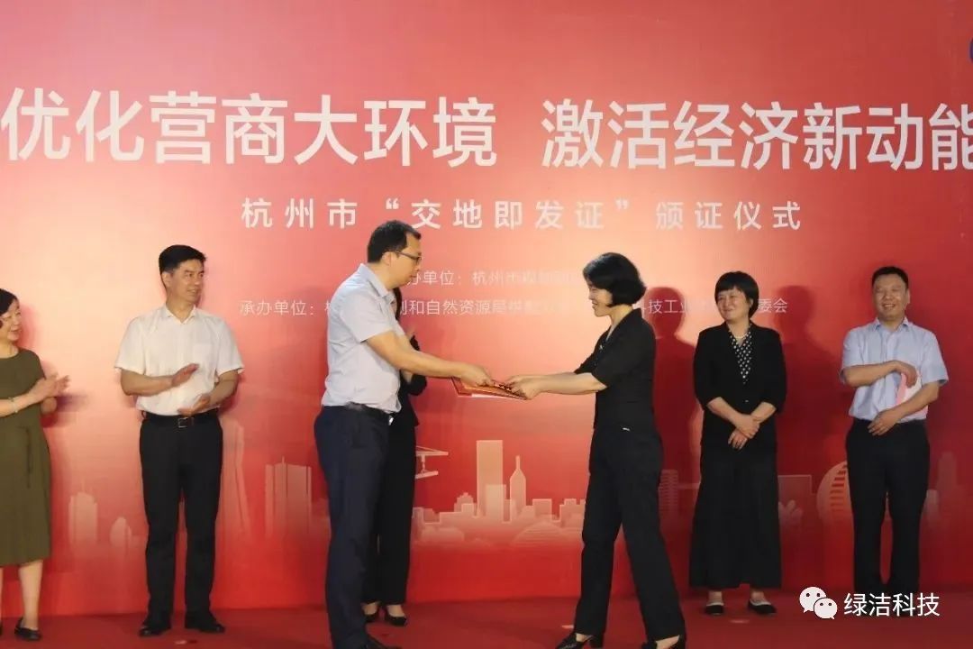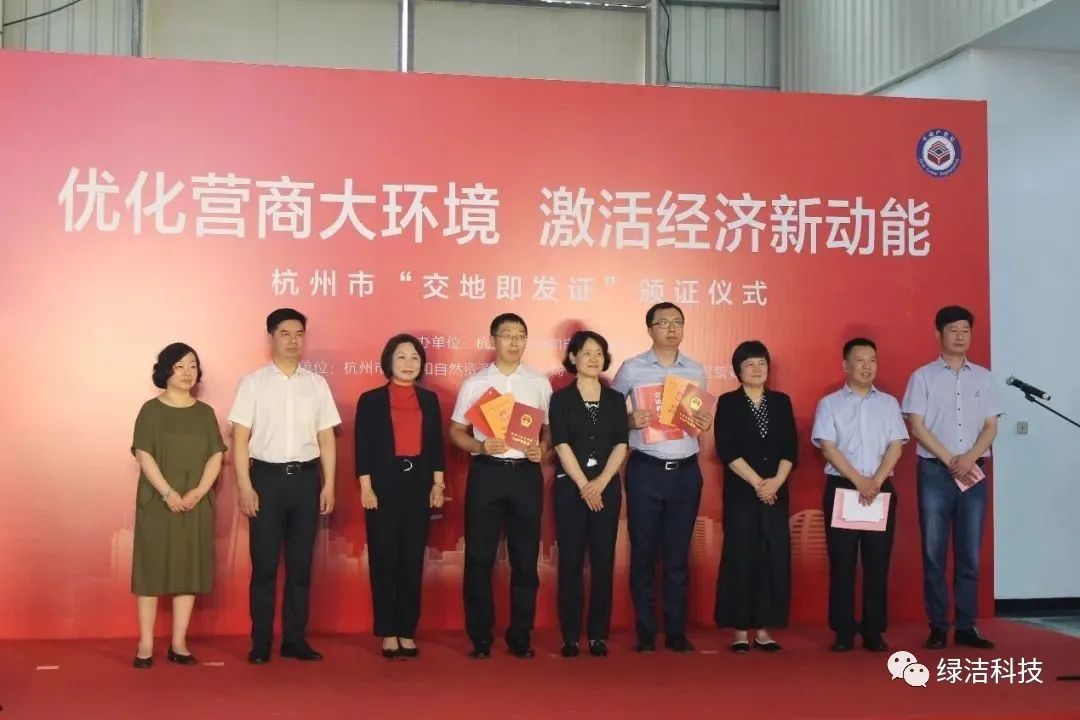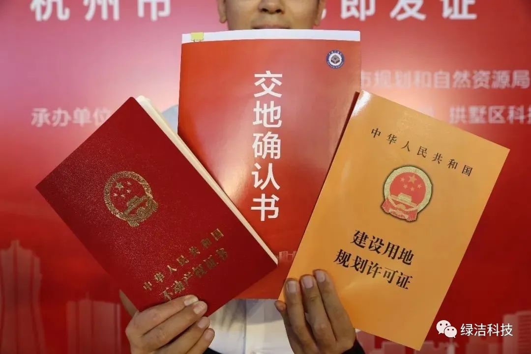 2020年6月5日,綠潔科技子公司杭開(kāi)環(huán)境的分支機(jī)構(gòu)杭州杭開(kāi)綠興環(huán)境有限公司一次性拿到了交地確認(rèn)書(shū)、建設(shè)用地規(guī)劃許可證、不動(dòng)產(chǎn)權(quán)證“一書(shū)兩證”,是我省率先做到“交地即領(lǐng)證、領(lǐng)證零時(shí)差”的首例,而此次杭開(kāi)兩地塊的發(fā)證是杭州市的首頒!